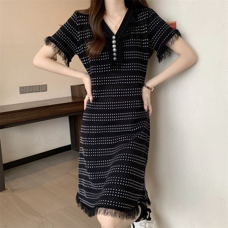 絶対欲しい 韓国系 タッセル ニットワンピース m-260