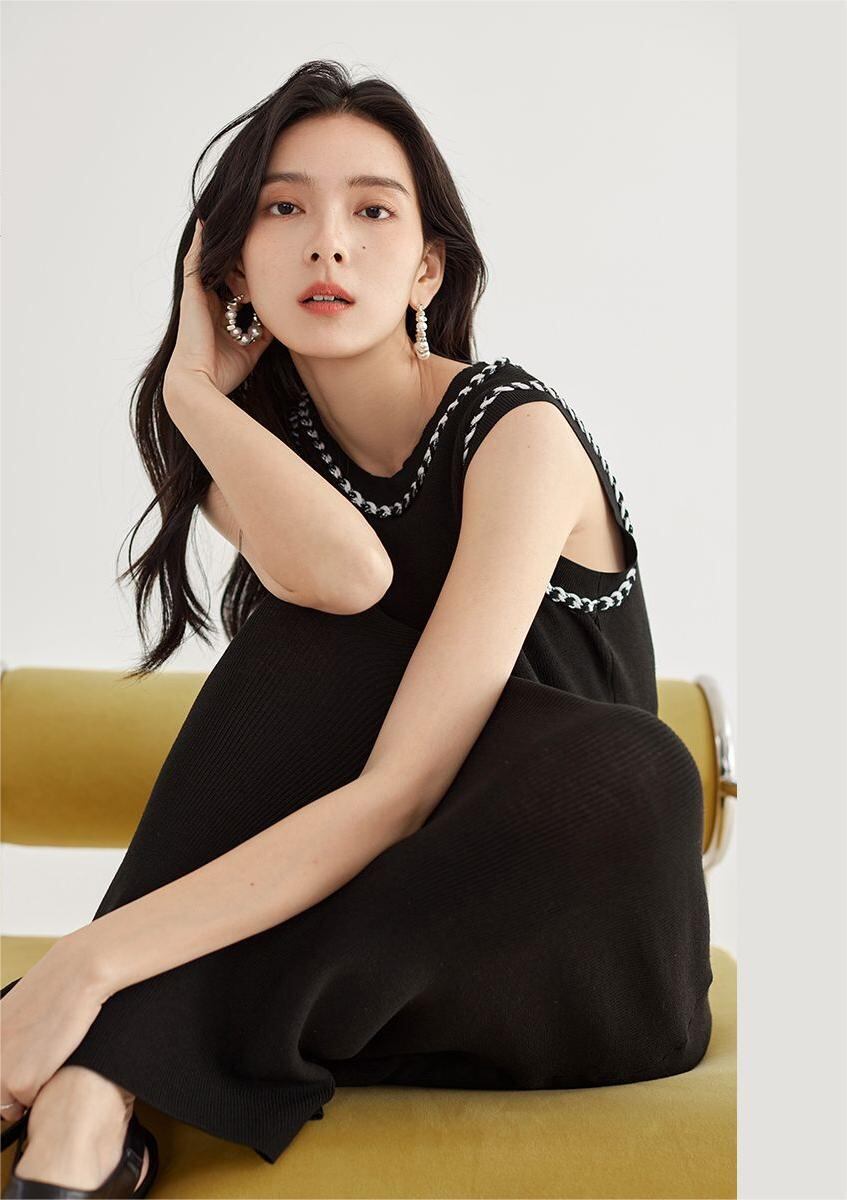 夏新作 質感のいい ブラック ニットワンピース m-261