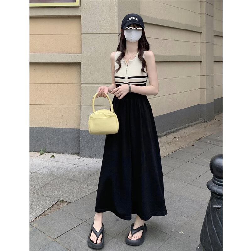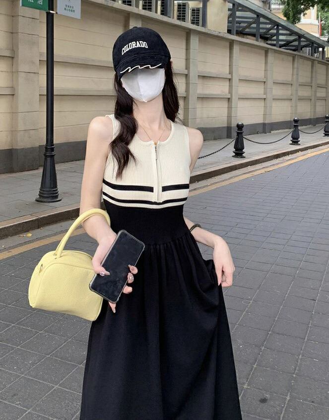 超人気 ファスナー 切り替え ノースリーブ ワンピース m-265