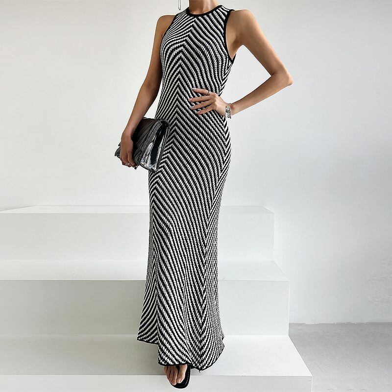 話題沸騰中 上品 エレガント ノースリーブ ニットワンピース m-268