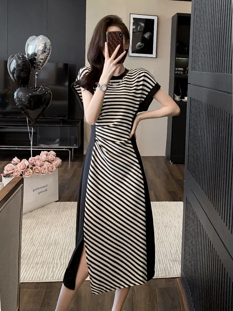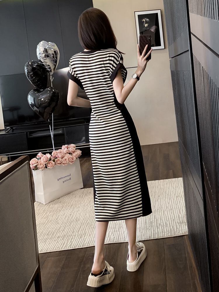 売り切れ必至 カジュアル ストライプ柄 切り替え ワンピース m-277