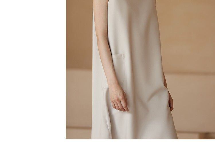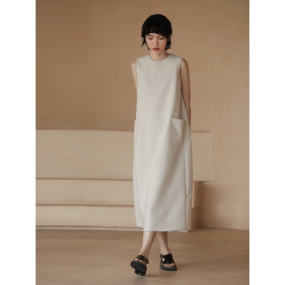 質感のいい ノースリーブ ゆったりワンピース m-292