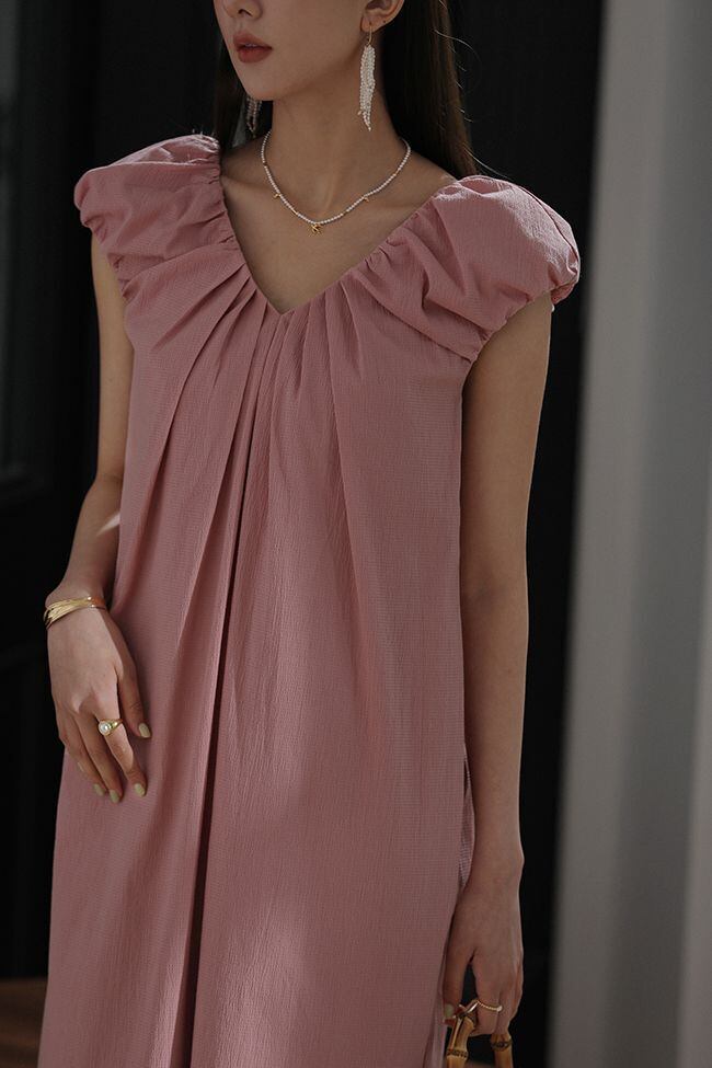 大注目 Vネック ノースリーブ ロングワンピース m-293