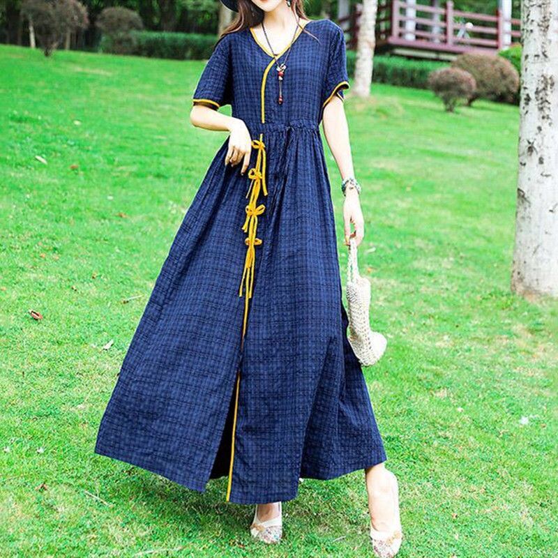 大活躍 質感のいい 綿麻生地 ノエスニック ゆったりワンピース m-353