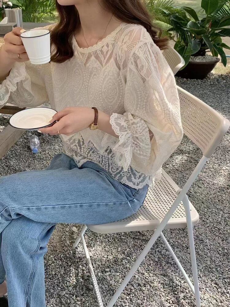 美人度アップ スウィート レース 透かし彫り ブラウス m-411