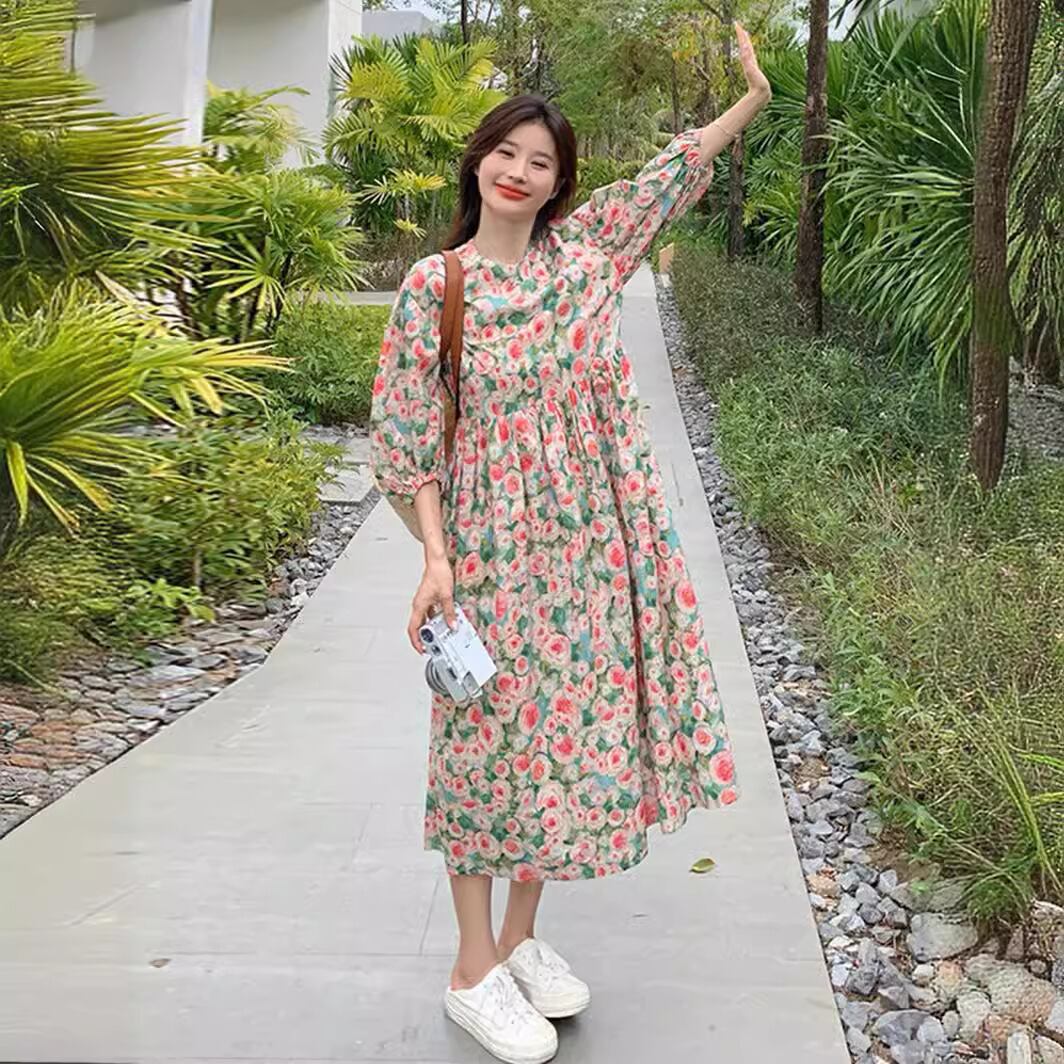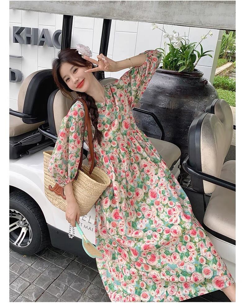 魅力的 花柄 スウィート ラウンドネック ワンピース m-508