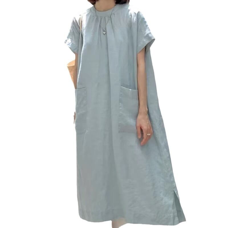 美人度アップ ポケット ゆったり ラウンドネック ワンピース m-474