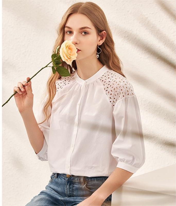 定番シンプル 透かし彫り ゆったり半袖 シャツ m-546