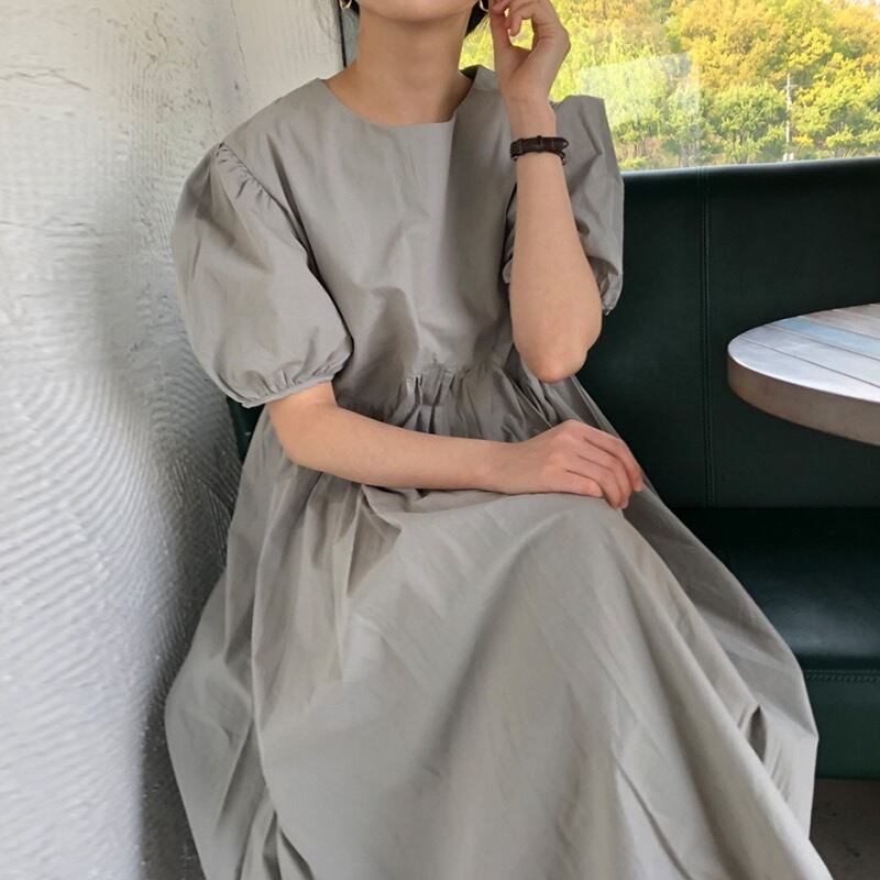 絶対流行 カジュアル ブッファンスリーブ ロングワンピース m-455