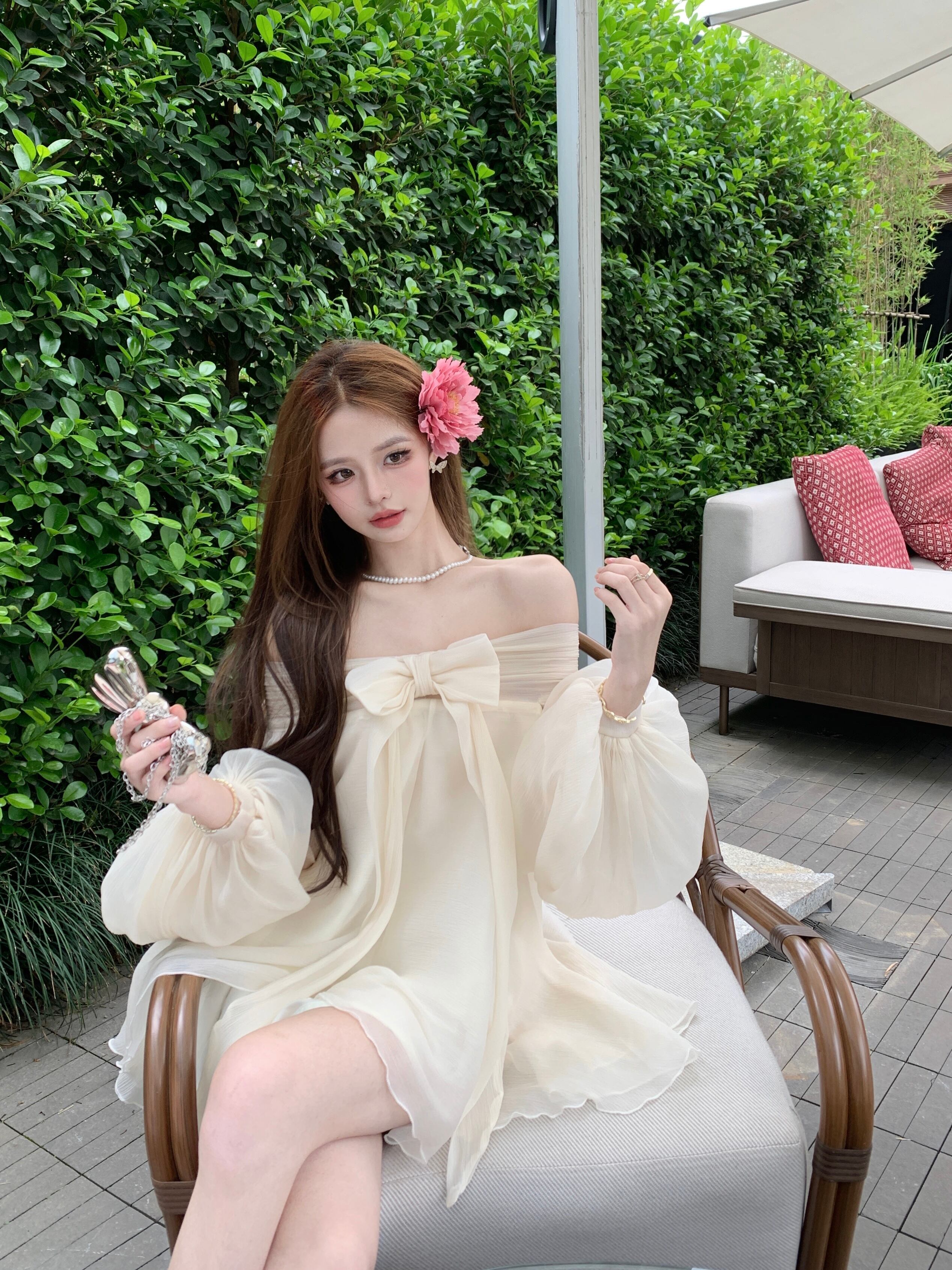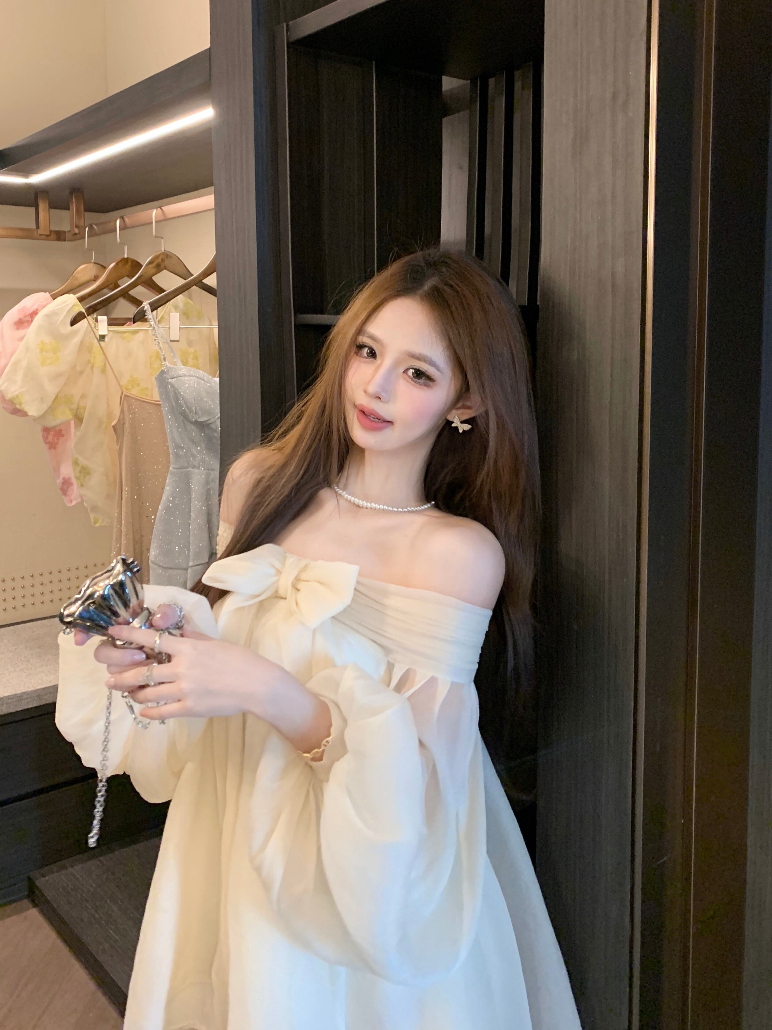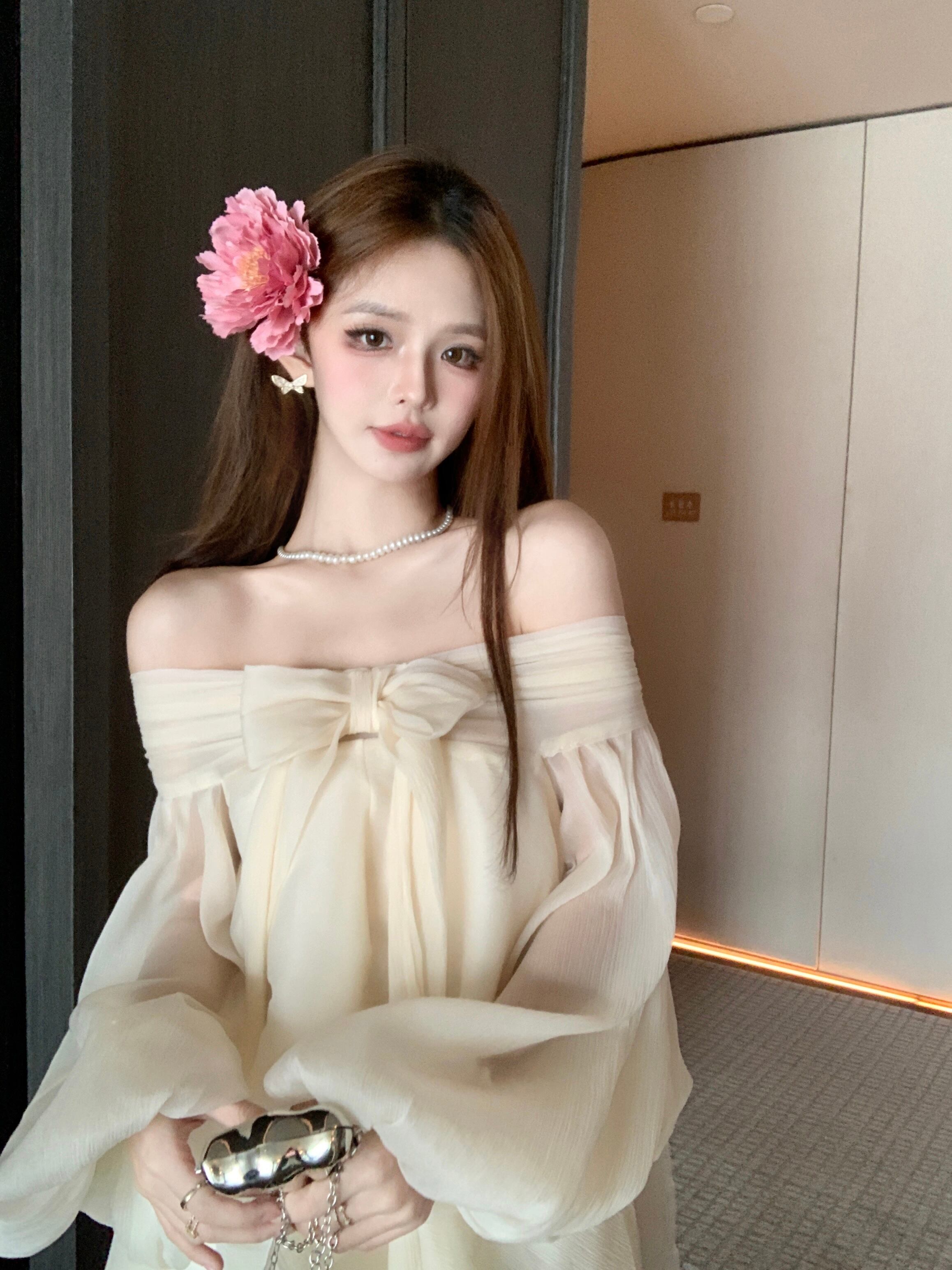 主役級 リボン付き オフショルダー ワンピース m-650