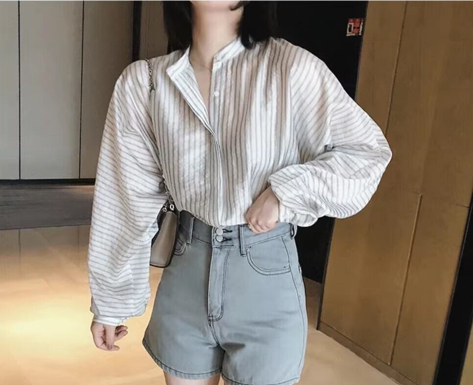 超人気商品 ゆったり ストライプ柄オーバーサイズ 長袖 シャツ m-644