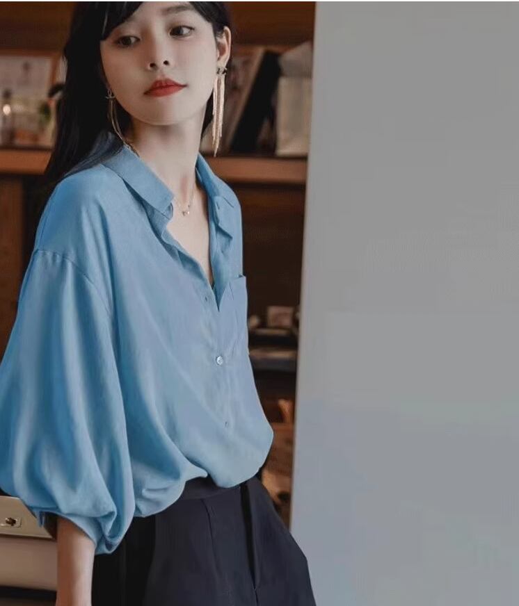 おすすめ ランタンスリーブ 5分袖 シャツ m-633