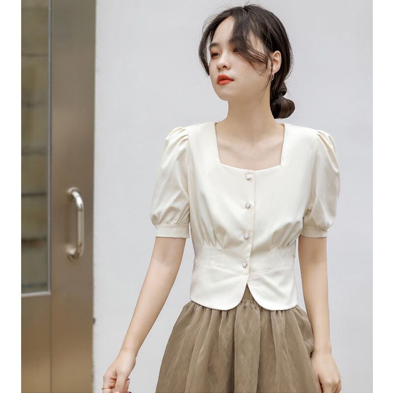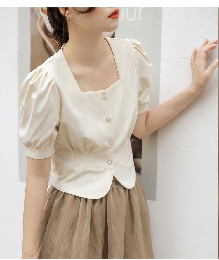 絶対流行 通勤 スクエアネック ショート シャツ m-635