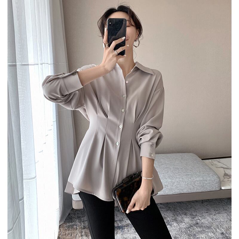 高級感 バックプリーツ ペプラム オフィス シャツ m-641