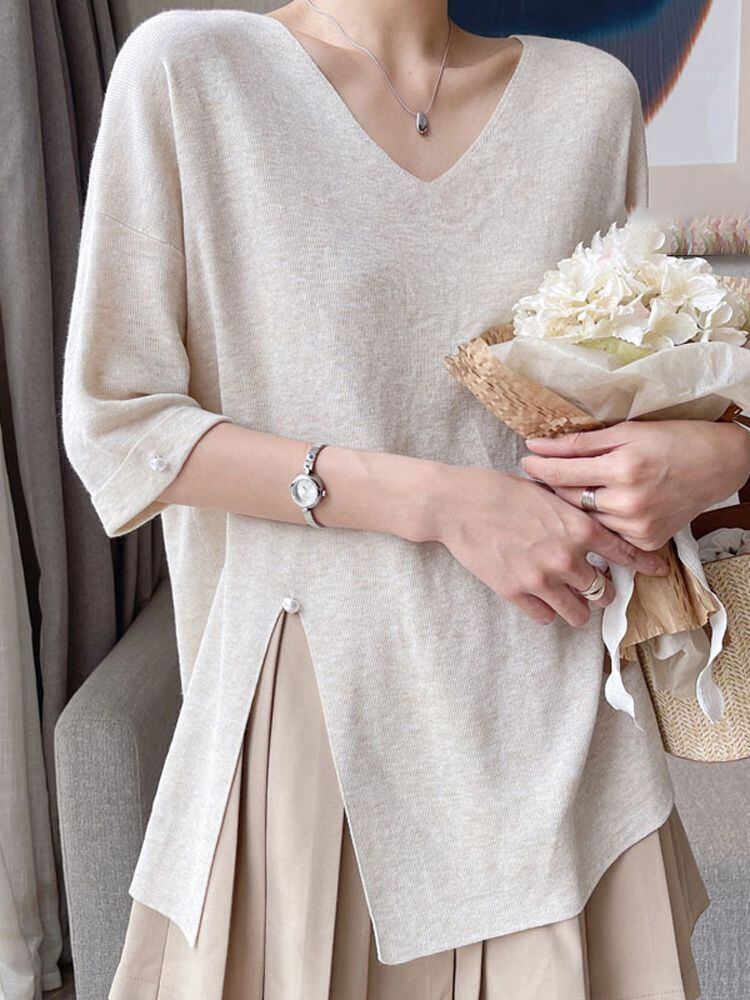 大人の定番 魅力的 Vネック ビーズ Tシャツ m-623