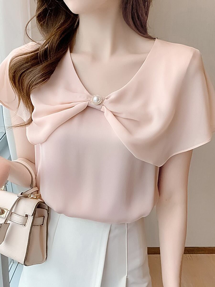 最愛の一着 シフォン リボン 無地 カットソー m-681