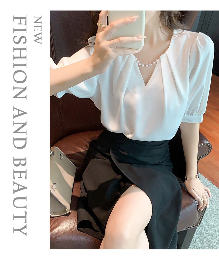 元気いっぱい パフスリーブ シフォン Vネック シャツ m-682