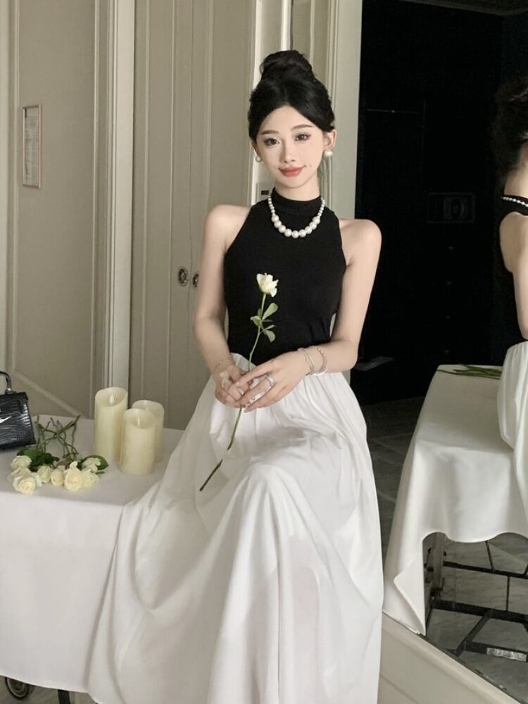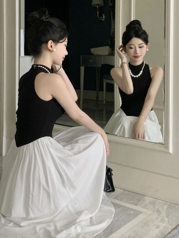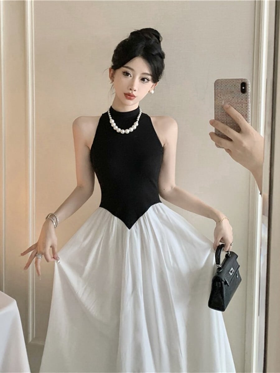 高級感 イブニングドレス ロング ホルターネック ワンピースm-698