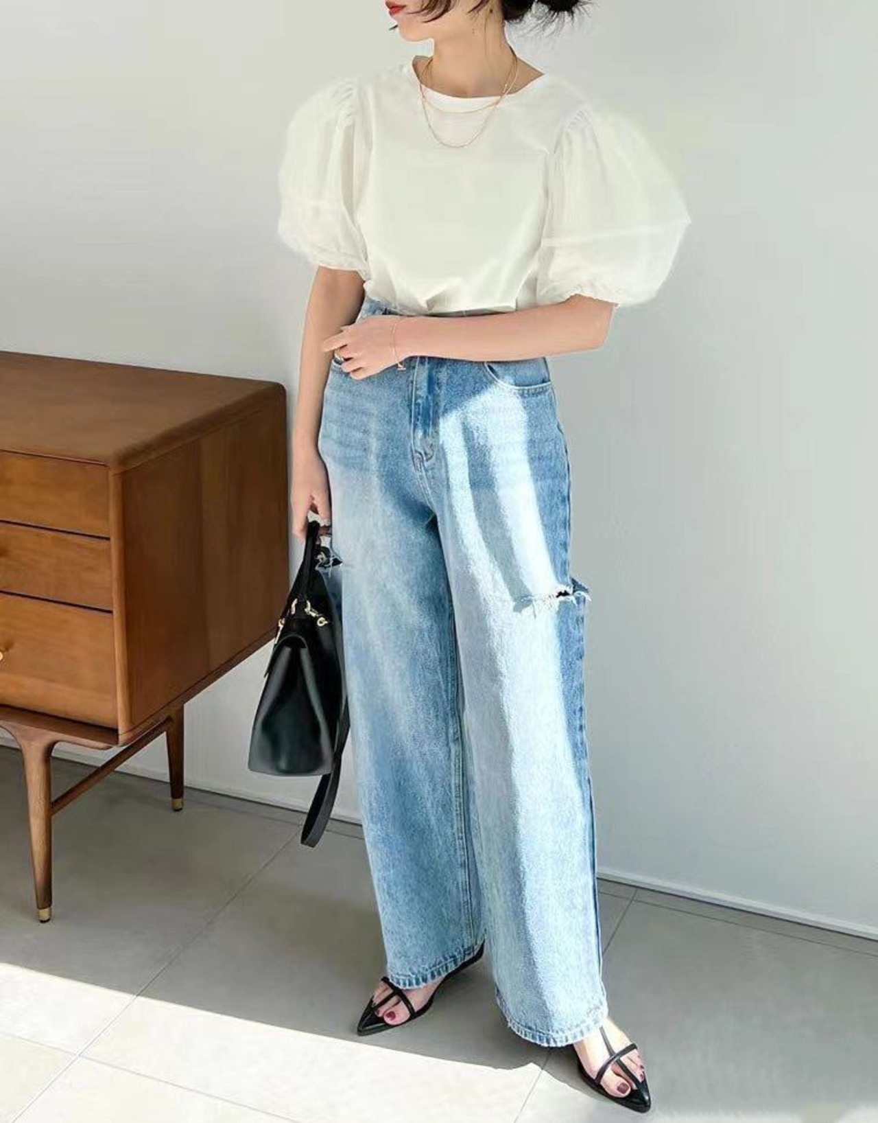 最愛の一着 ランタンスリーブ オーガンザー シャツ m-702